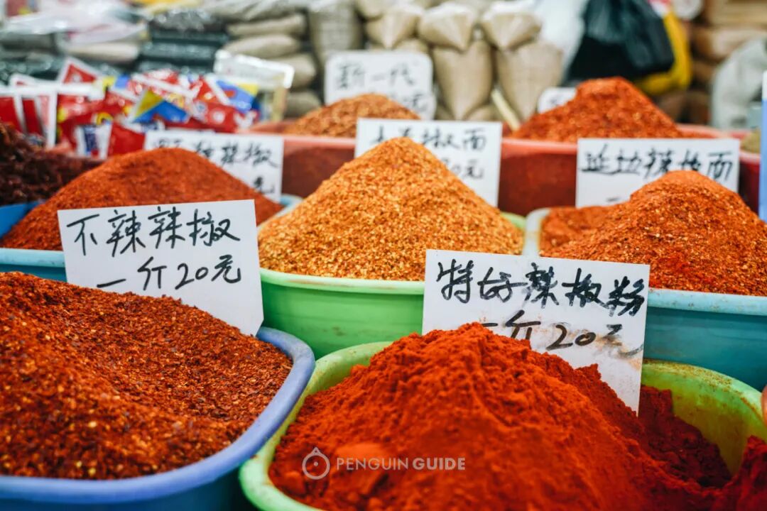 朝鲜族酷爱吃辣,且擅于使用焙干的辣椒粉。在辣椒摊上,你能看见各种色号的红摆满整个台子。口红专柜都没这么齐全……