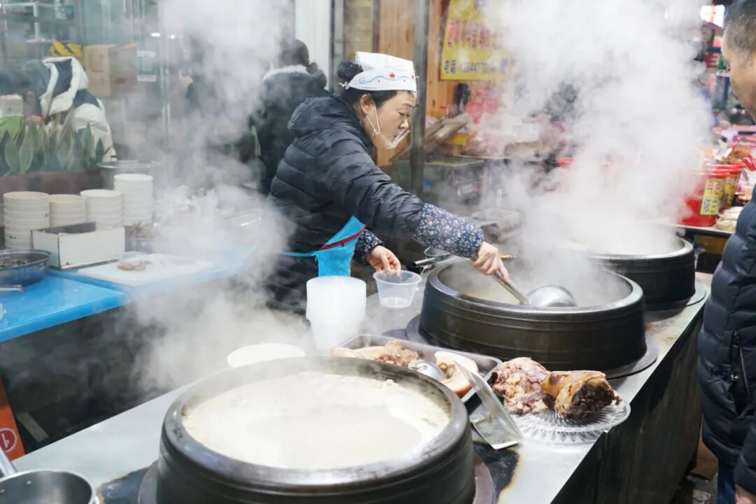 清晨延吉市场上,永远弥漫着高汤澎湃的肉香,拌上一碗米饭,在零下二十度的天气里能几分钟呼噜完一碗。