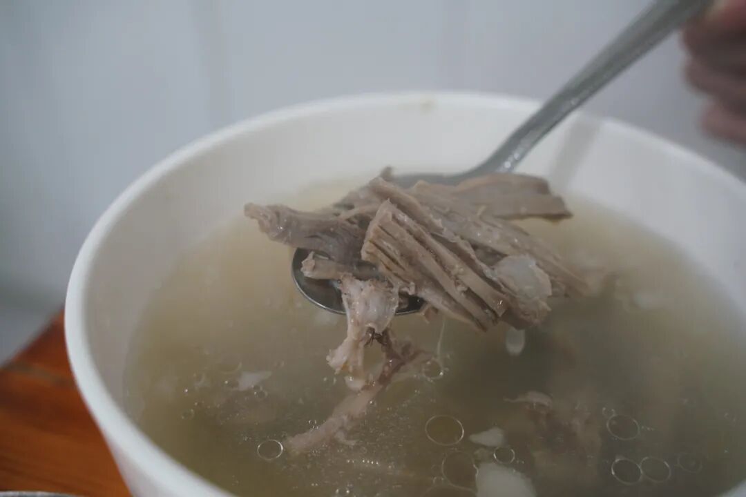 有文火熬煮的清汤型。单喝清寡,只要加一勺店家配好的牛肉酱,就如同注入了灵魂。