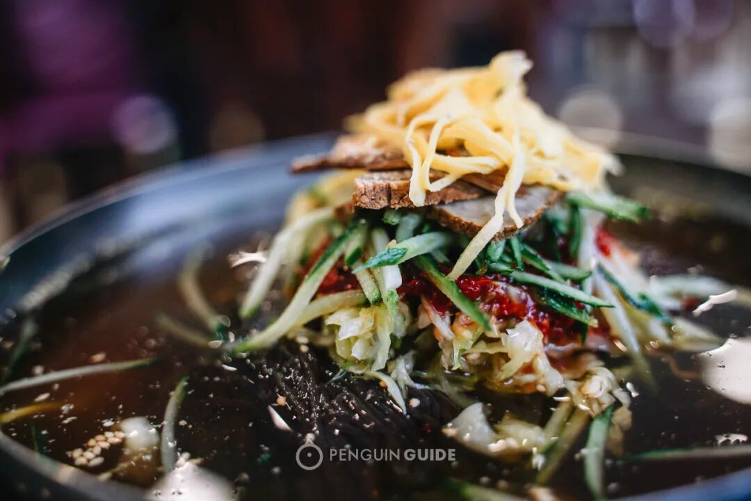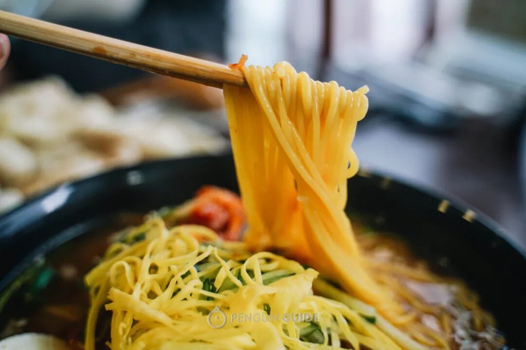 延吉冬天有三宝:雪糕、冰糖葫芦,还有一个就是冷面。冷面是延吉面食的符号,虽然同样来自朝鲜族,但在这里,明显经过了汉化:汤底比朝鲜冷面口味更重,除了酸甜的基调之外,酱味更浓一些。