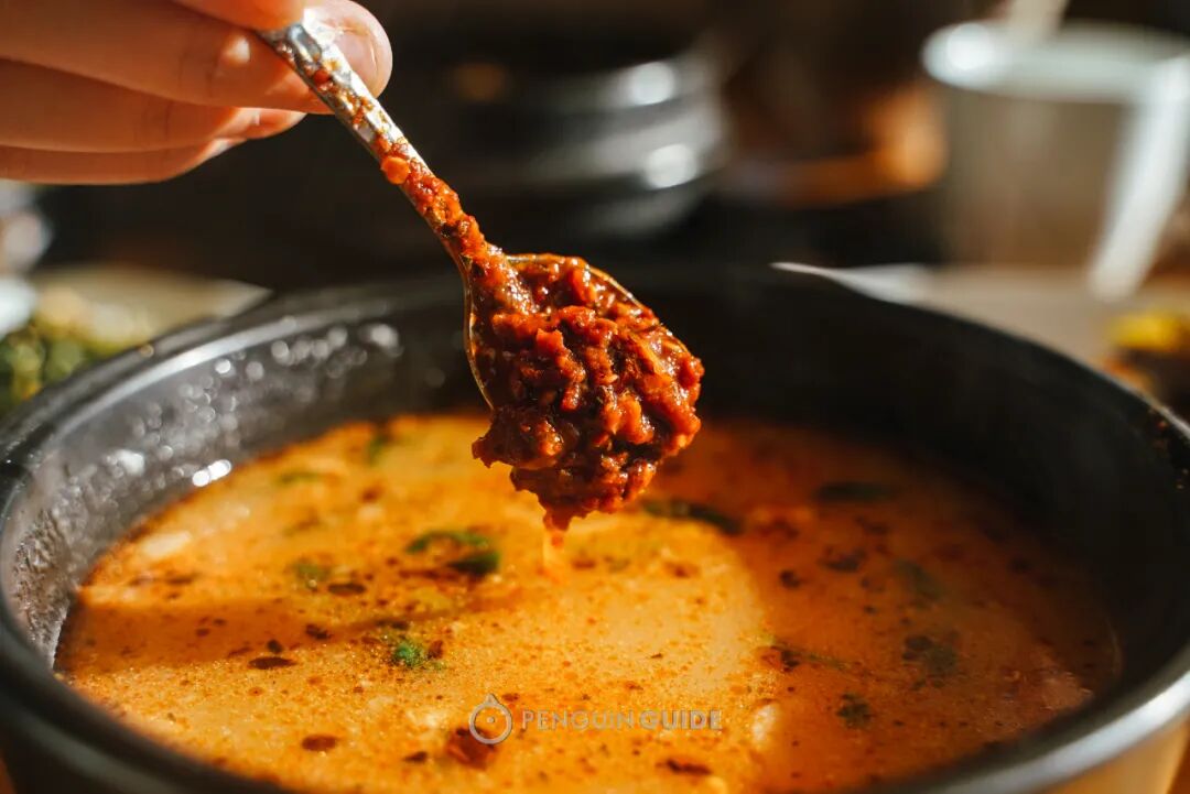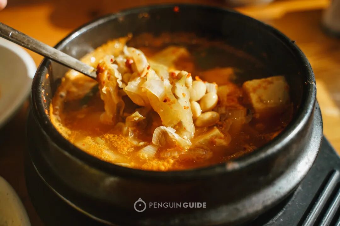 这样浓郁的发酵酱,需要在汤里被发挥到极致。先喝一碗最经典的酱汤,就知道和你在韩料店的大酱汤有明显差别。