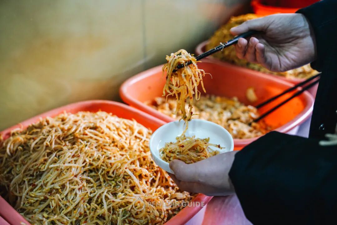 食材不同,腌制的调料、方式也会调整。比如,我们在同一家店吃到的黄豆芽和绿豆芽,一种咸辣,一种酸甜,味型完全不一样嘛!