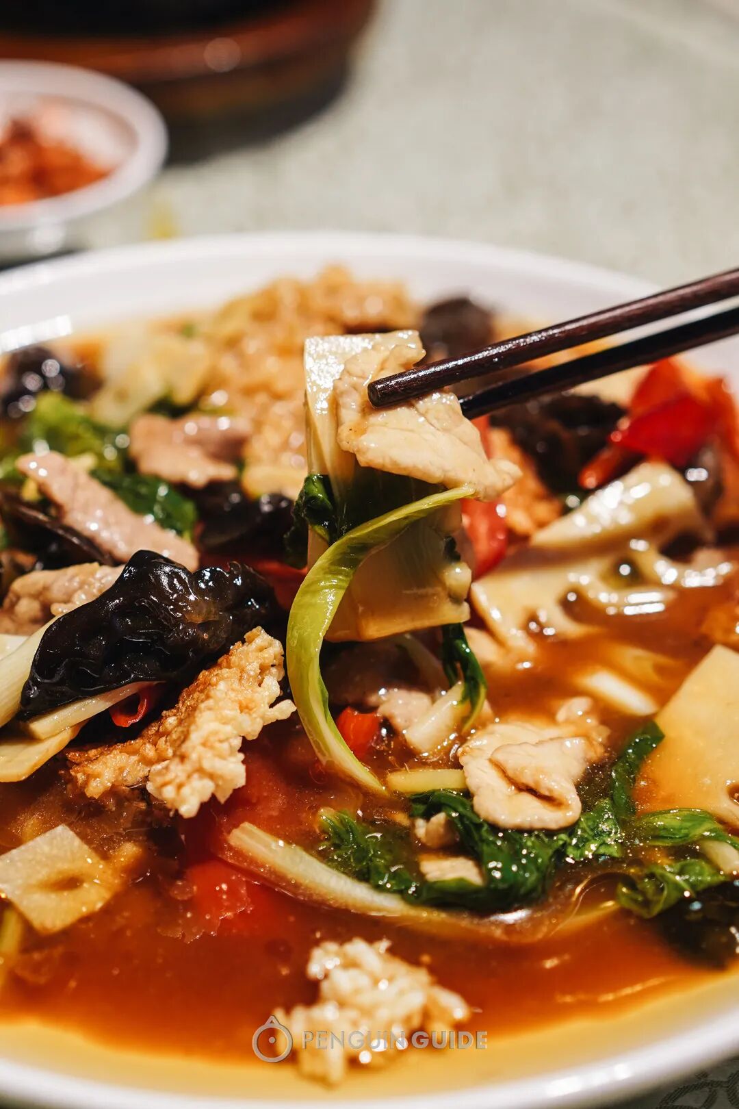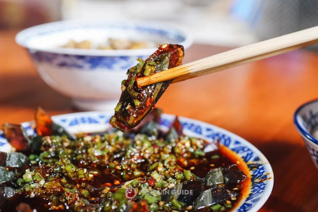 不光面好吃,凉菜都是一绝。比如凉拌皮蛋,只只溏心,浇上鸡汤打底的凉拌汁,鲜得很出彩。