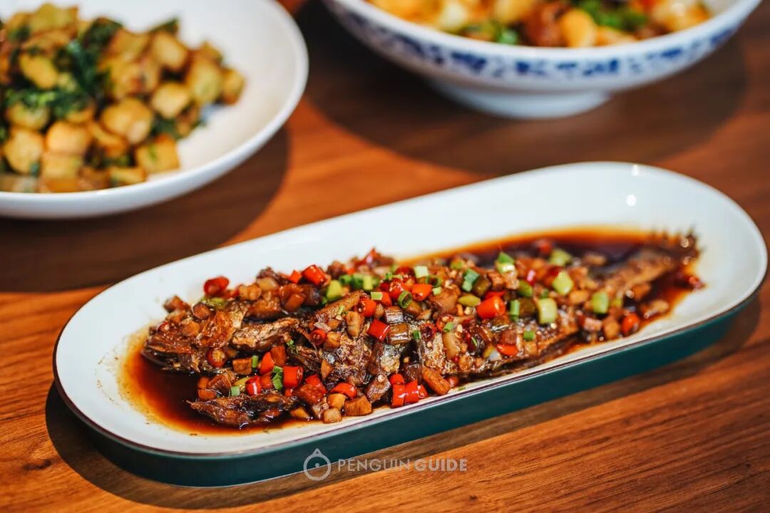 藿香茄子,炸得外酥里糯,藿香味把握得很好;干烧臭黄鱼,发酵过的鱼肉散发出特殊的浓香,鱼肉像白花花的蒜瓣似的,质地紧致柔嫩。