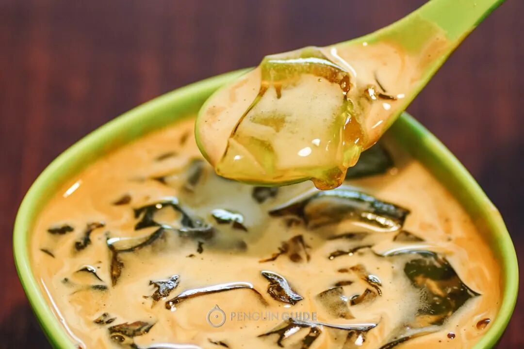 真正的灵魂在于少见的翻砂红糖,稠密绵滑,像化开的花生酱,又充盈着微妙的空气感,柔柔裹住每块冰粉。