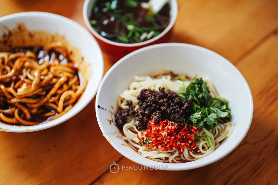 先来一碗勾魂面,牛肉碎炒得极酥,香味很有杀伤力;再一碗甜水面,甜咸麻辣都拿捏得平衡,调味精准而老道。