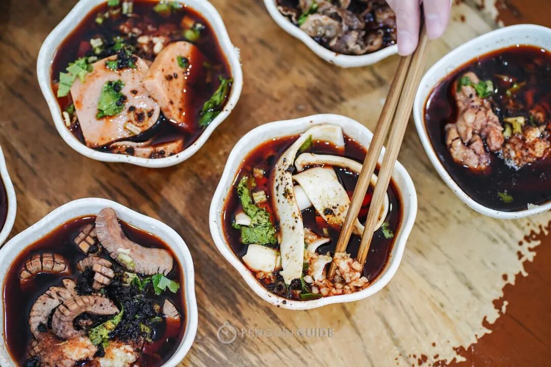哪些是必点项?直接向土著抄作业:胡辣牛肉、肥肠、五花肉、贡菜、秘制脑花,最后记得烫一盘现包的抄手。