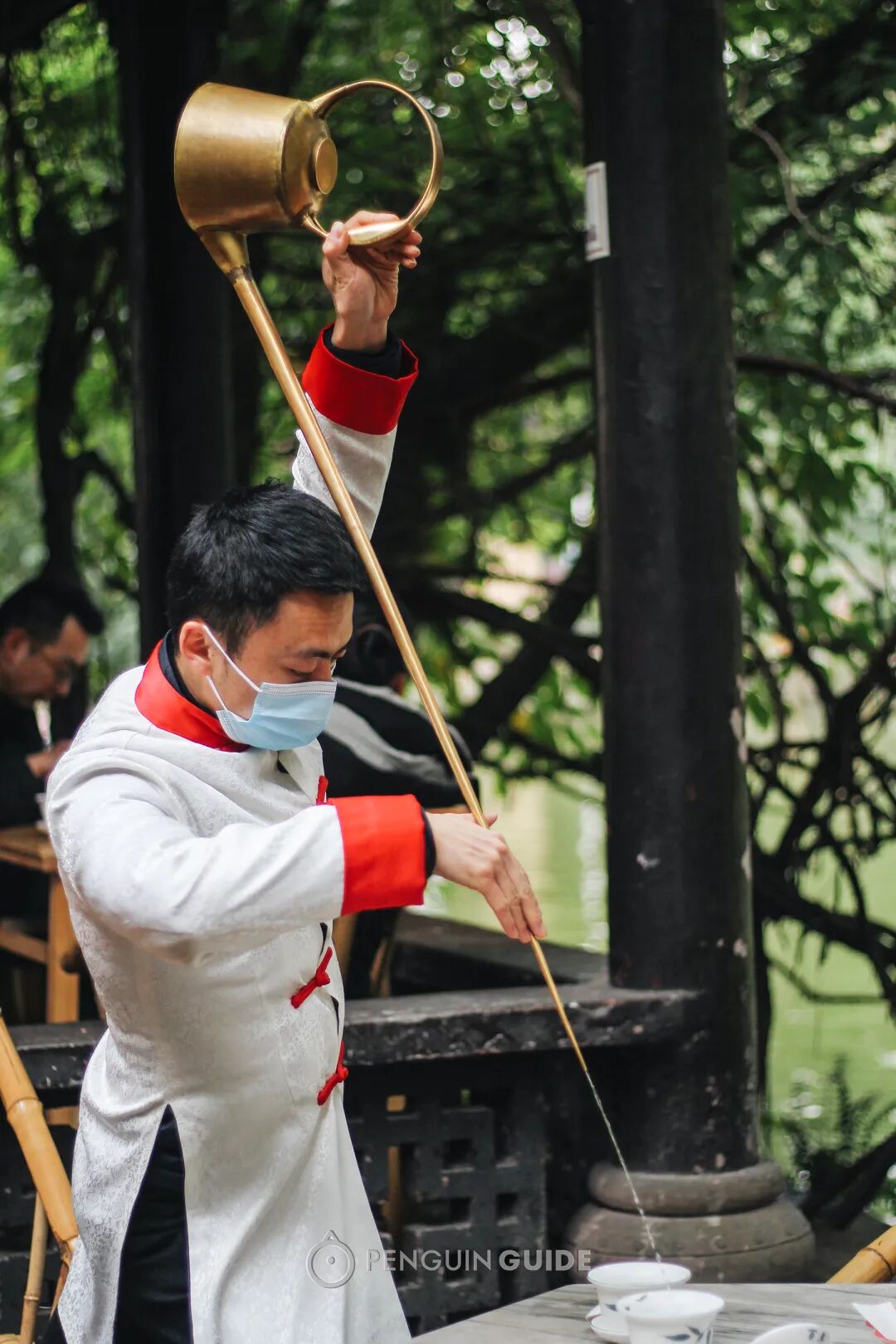 来成都,怎么能不去人民公园!见识完人间魔幻的相亲角,去鹤鸣茶社喝茶、掏耳,看老师傅用黄铜壶表演倒茶,真滴巴适~
