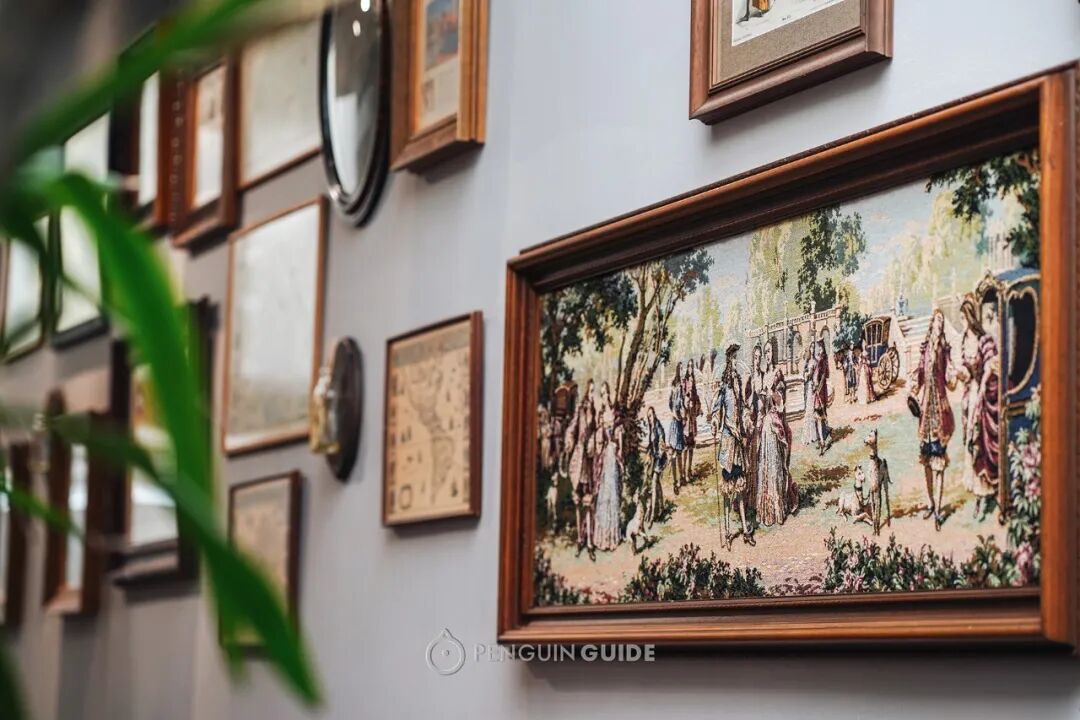 满墙古典画,好像穿越到二十世纪初的欧洲老洋房。拉开神秘的绿丝绒幕布,后面还藏着一个小型中古西洋家具展!