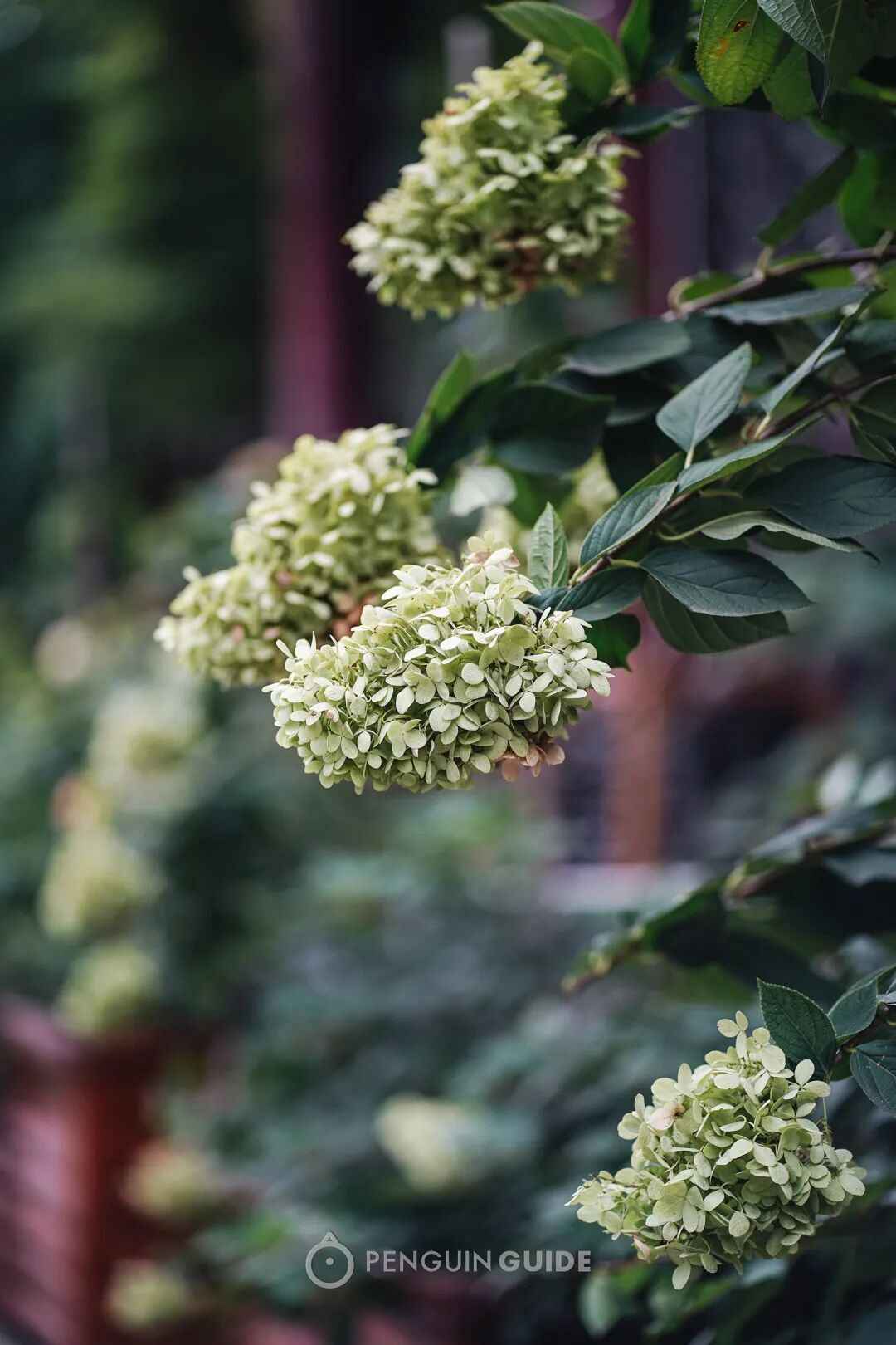 庙里的景观一年四季都在变换:夏天来,有艳丽的曼陀罗和素雅的木绣球;深秋则轮到高大繁盛的银杏树登场,满目金黄,庄重又华丽。