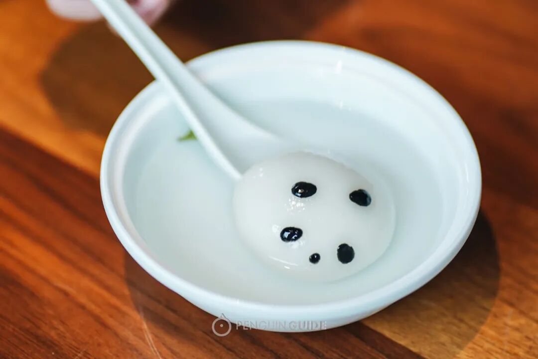 最后上了一粒熊猫汤圆,轻轻一戳,芝麻馅就奔涌流出,也太可爱了啊啊啊!