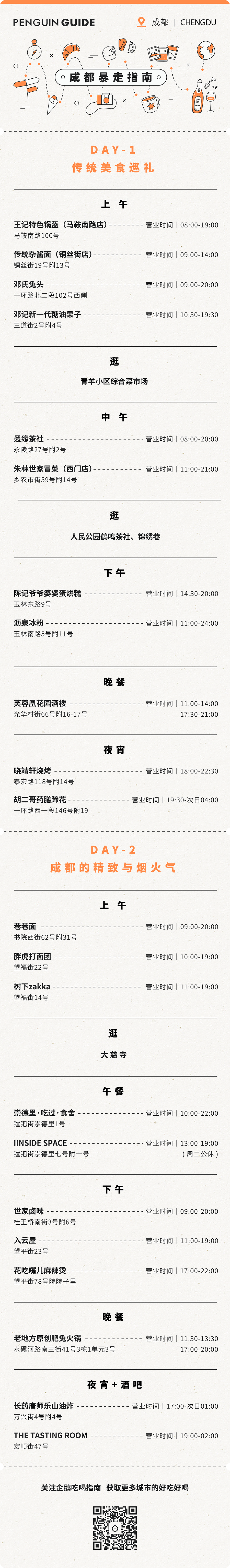 第一条很传统,全是土著的私藏清单,有扫地僧级别的苍蝇面馆,也有性价比让人落泪的传统宴席川菜;