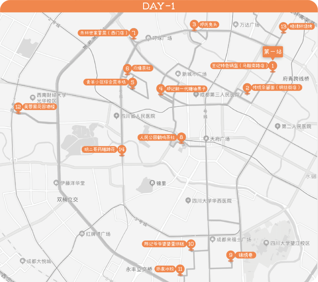 第一天嘛,也就安排了13家店!别觉得撑,大部分都是小吃,逛着逛着就消化了~