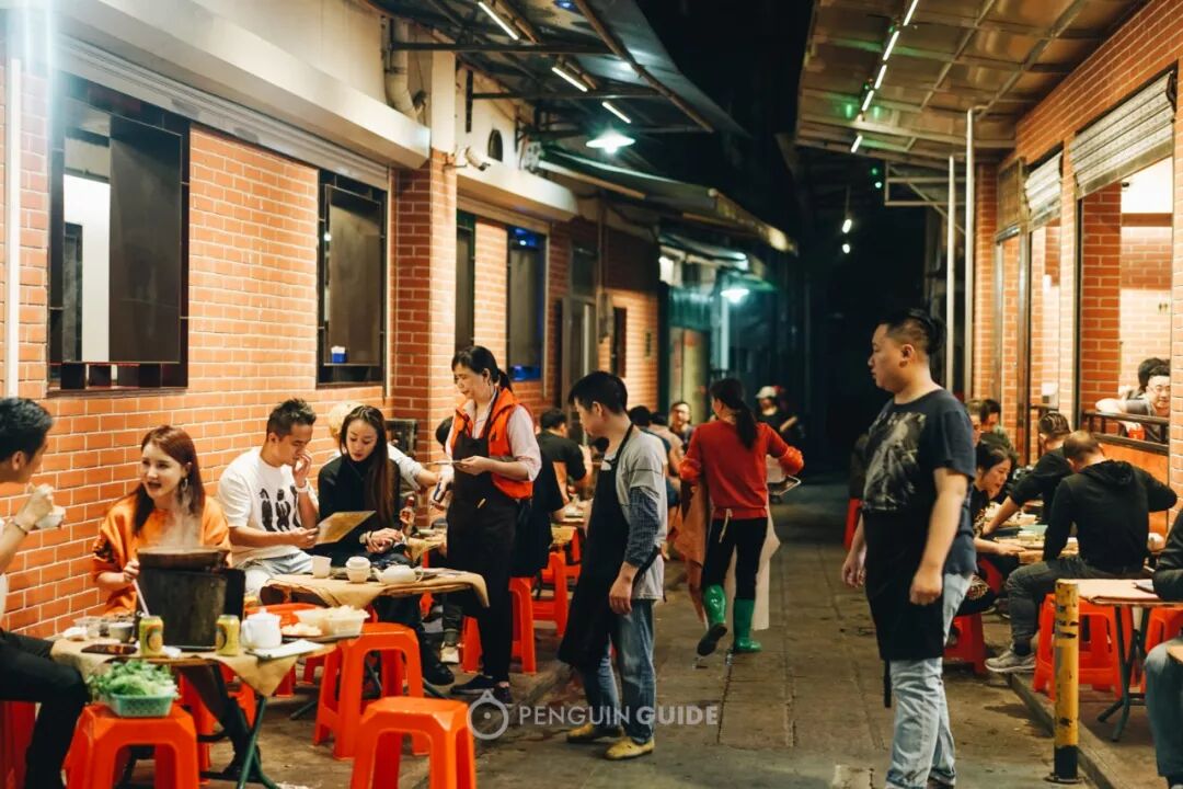 本店三层楼全坐满,老板不得不盘下隔壁两家店,连过道跟露天区域也摆满桌子,以一己之力带火整条街。