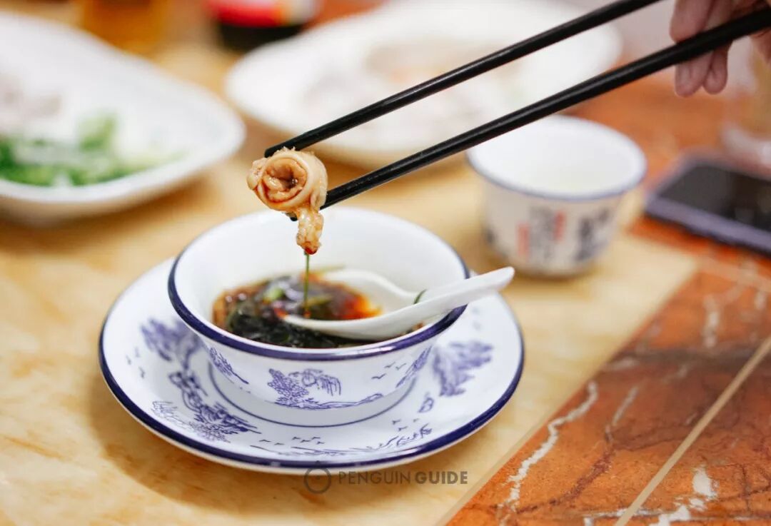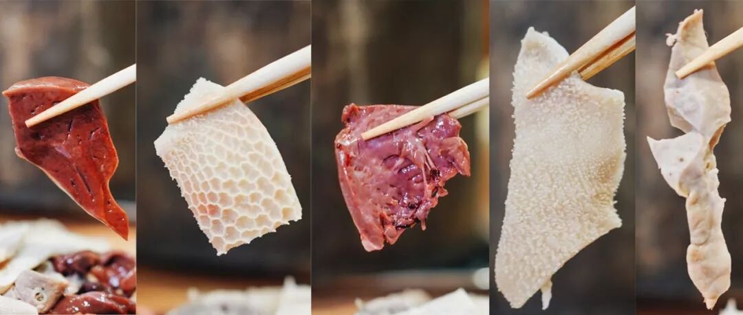 另一种能刷新认知上限的食材,是猪肝。烫至刚好由生转熟,柔嫩丰腴,绵密如云,很接近高级鹅肝的口感。