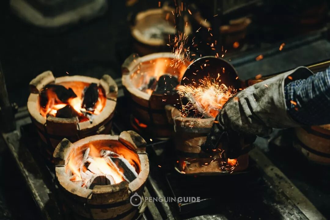 寒冬深夜,大家在老骑楼下支起炉子,空气里都飘着炭火味和肉香。