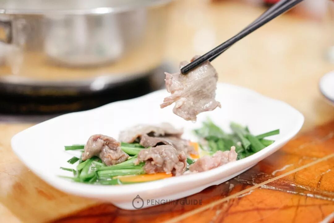 店家的要求不仅体现在食材精,连服务也很专业。走进这家店,你唯一的自主权只剩调点姜葱酱油,其他都由经验丰富的店员代劳,不给你任何把肉涮老的机会。