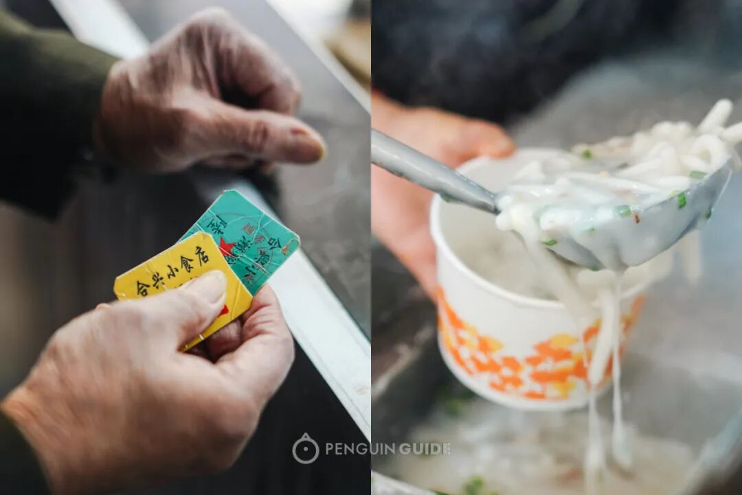 濑粉里有大量冬菇、虾米、猪油渣,再撒一把辣萝卜,满口咸香。