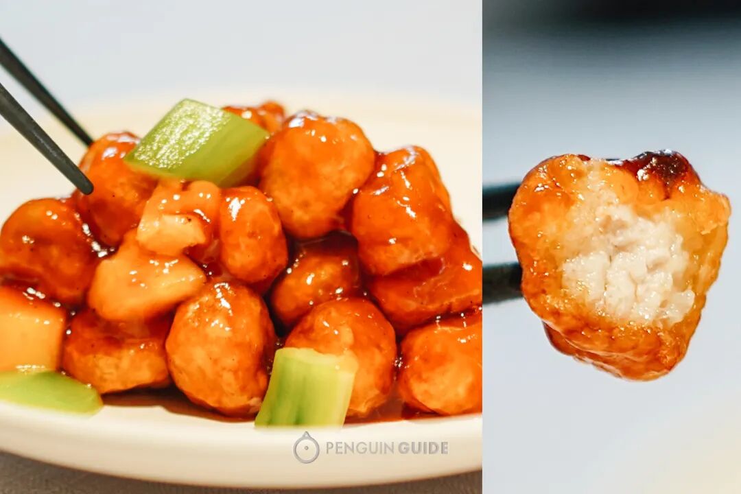 比如咕咾肉,粒粒大小一致,挂浆薄而脆,加了酸笋调味,比传统版本多一重发酵酸香,挺有趣的。