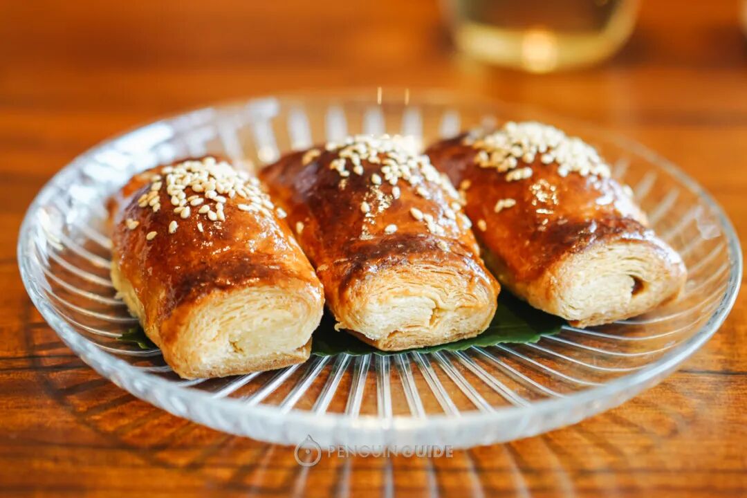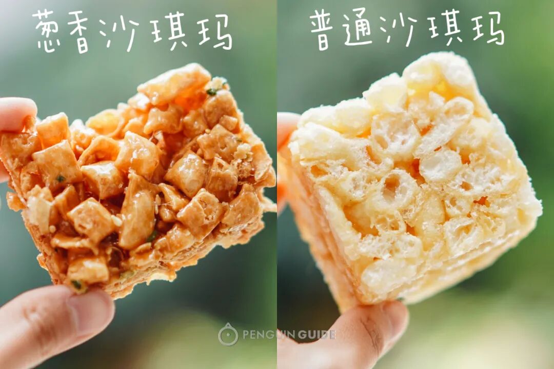 店里也有不少传统糕点卖,推荐葱香沙琪玛,比一般沙琪玛更酥脆,入口先是甜味,然后泛起淡淡的咸葱香,挺少见的。