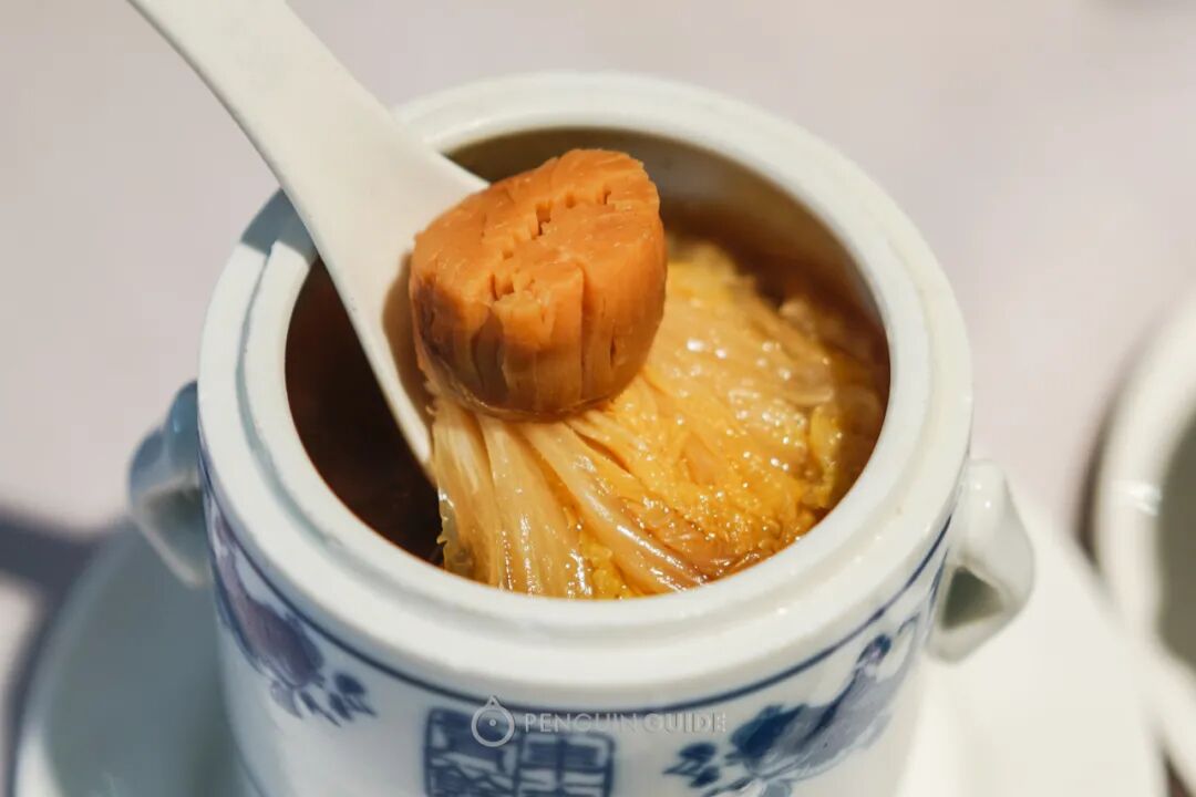 炖汤是这家的招牌,每日限量,不预定基本喝不到。只卖30来块一盅,真材实料到什么地步呢?会给瓷勺那么大的日本干贝,简直以本伤人。