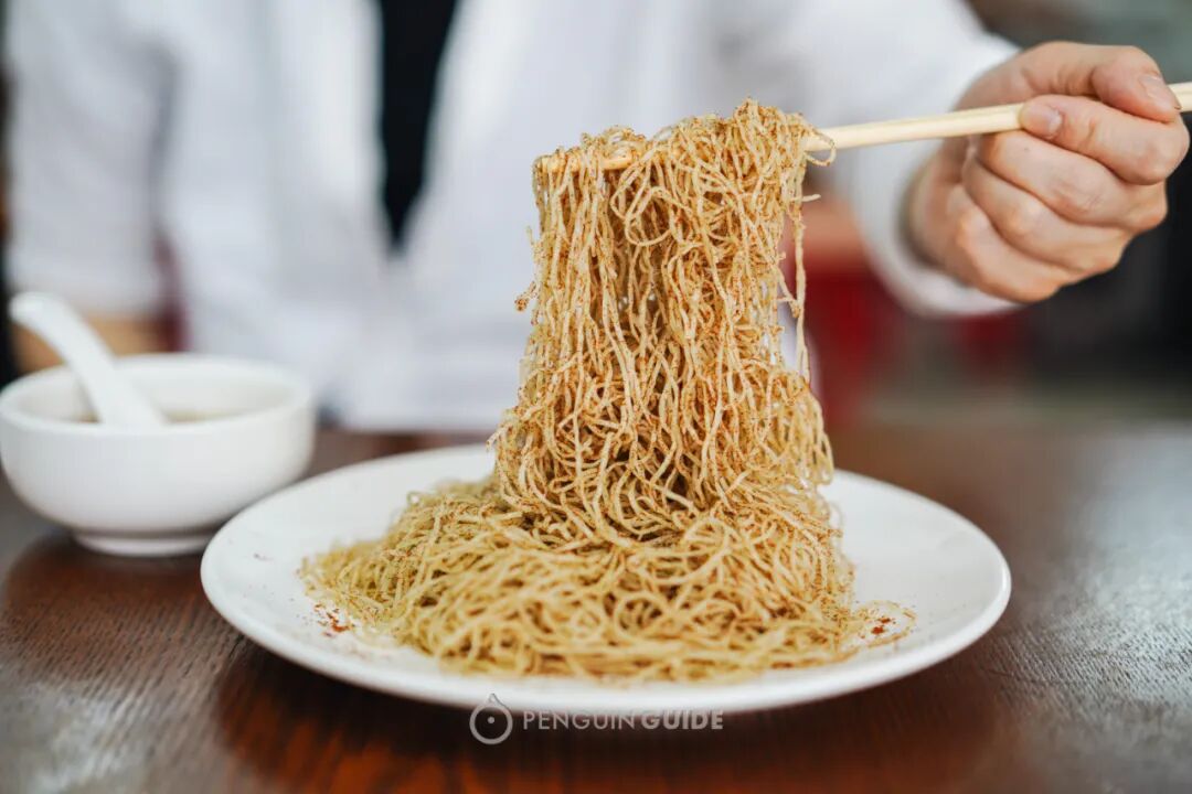 一坨爽滑弹韧的面条,先在猪油里打个滚,再沾上巨量咸鲜的虾子——想想就知道有多罪恶!