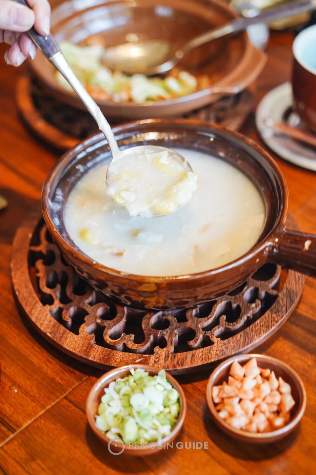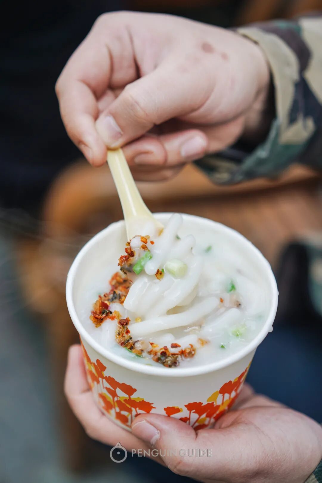 口感变化很奇妙,滚烫的时候吃,质地像粘粘的米粥,凉下来会变成豆浆般稀薄。