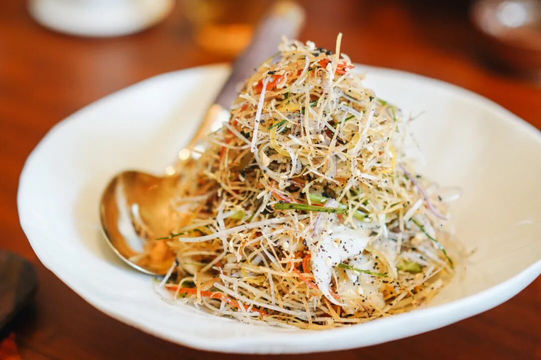 即使不吃海鲜,为了菜单上那些几近消失的怀旧菜:柚皮鱼肠、钵仔莲藕粉、绿豆酿大肠粉肠……也值得来一趟。