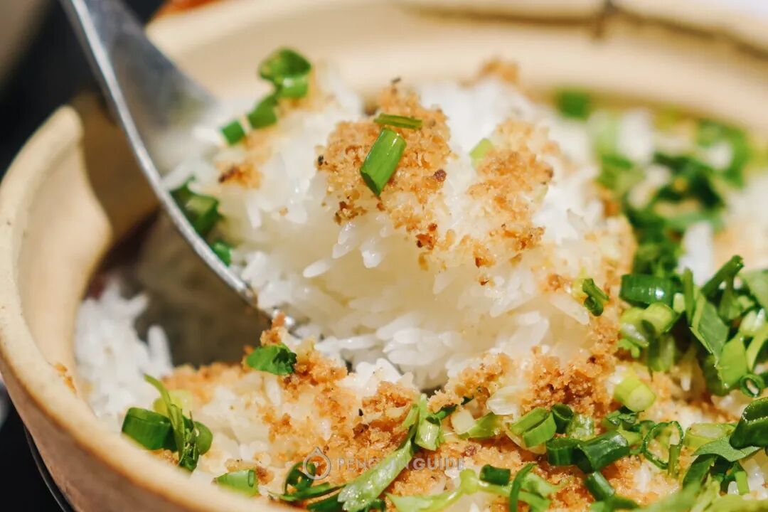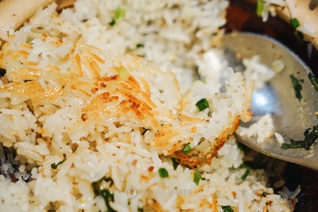 我们通常还会点一锅煲仔饭,用的泰国香米很靓,每次水分都收得干爽,能掀出一片焦脆、金黄的锅巴。