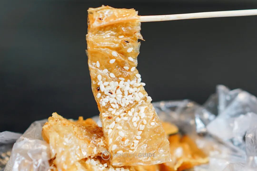 也有素烧鹅(炸腐皮),撒上芝麻,香得有点停不下来。