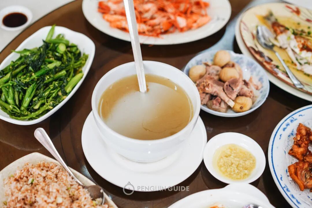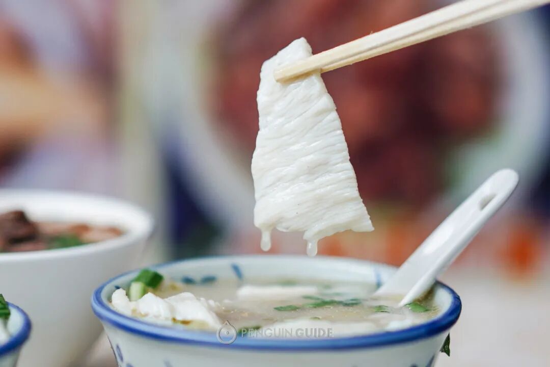 每次去都要连喝三碗白果猪肚汤,猪肚处理得很干净,再加入白果、马蹄、腐皮慢炖几个小时,汤色像豆乳般浓白,清甜温润。
