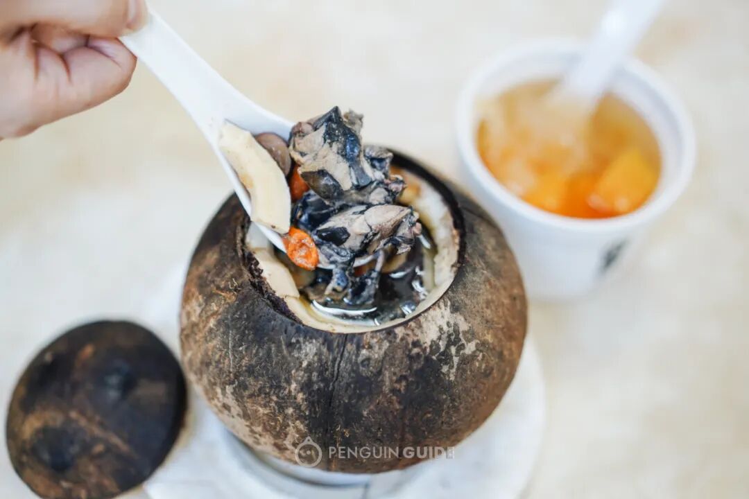 椰子炖竹丝鸡汤,大半碗都是肉,真材实料。踢个拖鞋就能下楼喝汤,广州人的日常真的好幸福噢!TUT