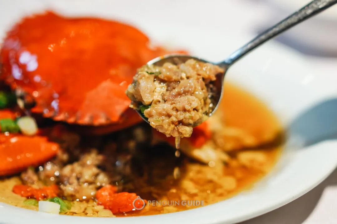 肉饼吸收了蟹肉的精华,滑嫩多汁,手剁的肉粒感很立体,光靠碟底这盘肉汁,就能拌两碗白饭……