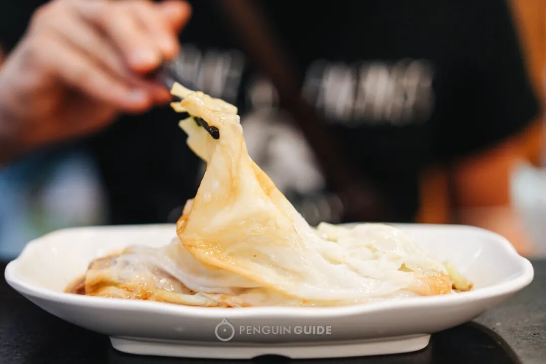 粉皮薄滑,不韧不粘,花生油香味好迷人~配一碗熬出粥油的绵密窝蛋粥,就是老广最幸福的早餐。