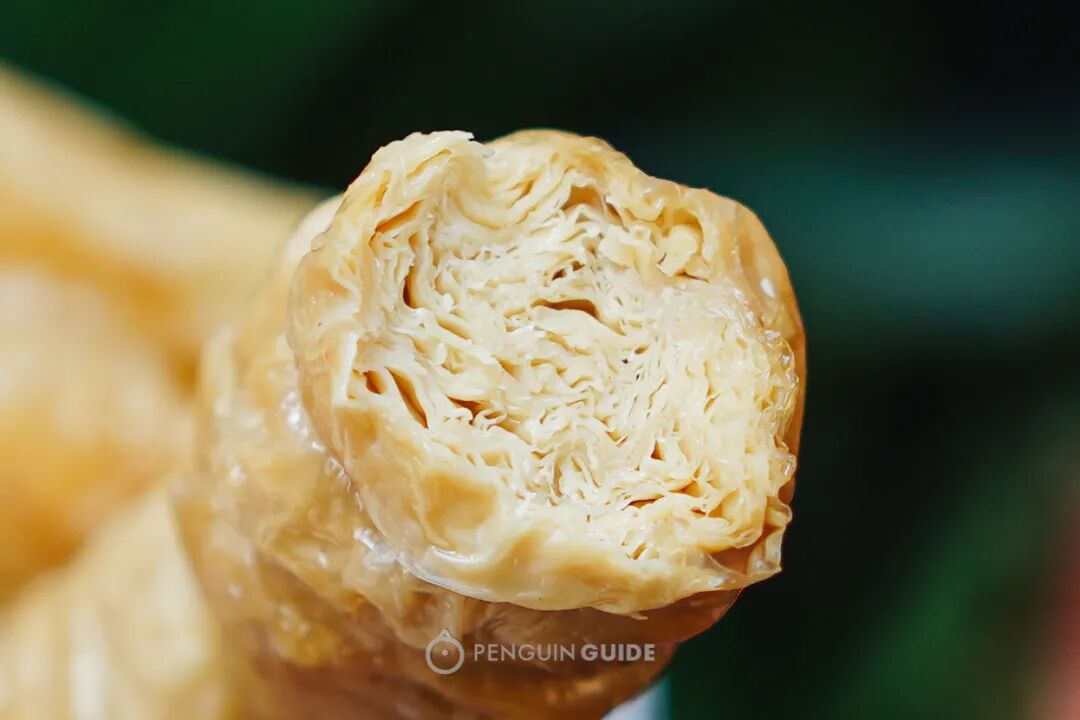 扎蹄这种手工素食点心,上次还是在香港贵妇零食铺陈意斋吃到的。制作很费功夫,要人手一层层把腐皮裹紧,全广州也就这家店还在做。