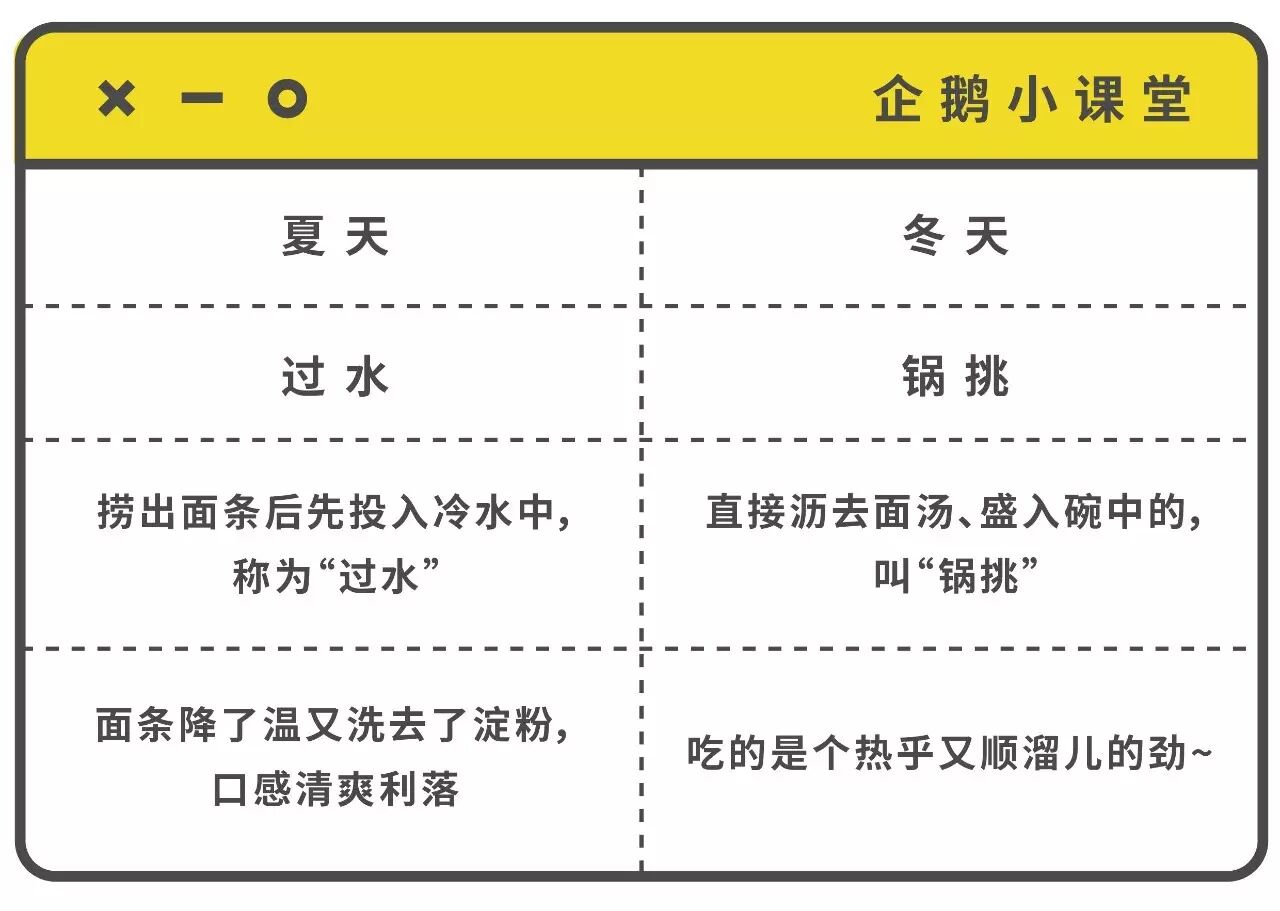 但甭管什么面,煮熟了都要透亮、顺滑,口感柔韧有弹性。以上要求都达到了,才能继续做下一道选择题:吃“过水”还是“锅挑”?