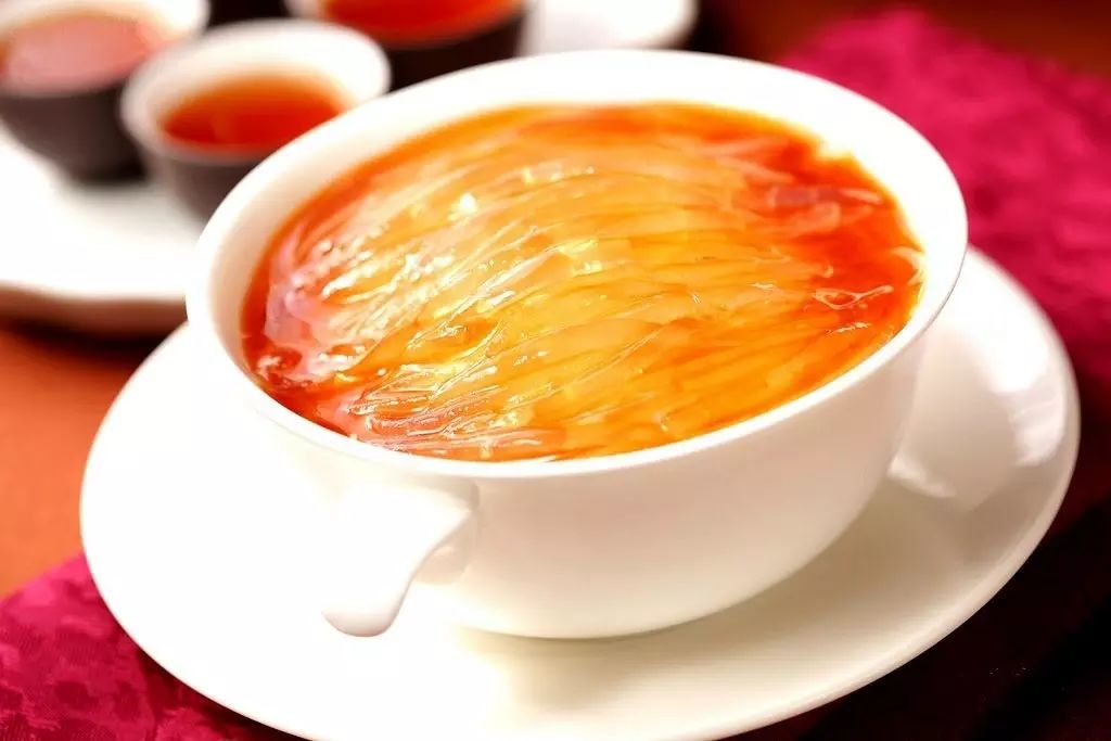 30年代,大三元家号称“翅王”的吴鸾主制的这种菜式,选用质地上乘的裙翅,由大量的各种肉类煮出的汤汁煨制而成,韧中带脆、汤清味鲜、浓而不腻,美味可口。