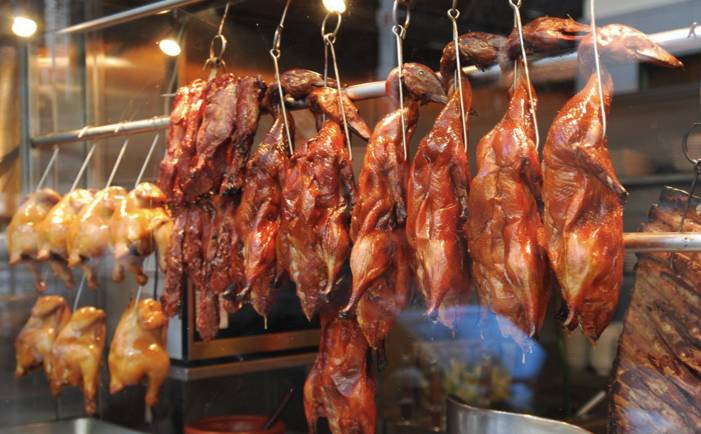 烧腊一般是先用秘制的酱汁腌制一段时间再放到炉里烤,皮脆肥美,口味略带粤人喜爱的甜味。以前经济不太好,只能在节假日或家里来了重要客人时“落街斩料”买烧腊。现在生活好了,老广们喜欢时不时就去烧腊店“斩料”加菜。