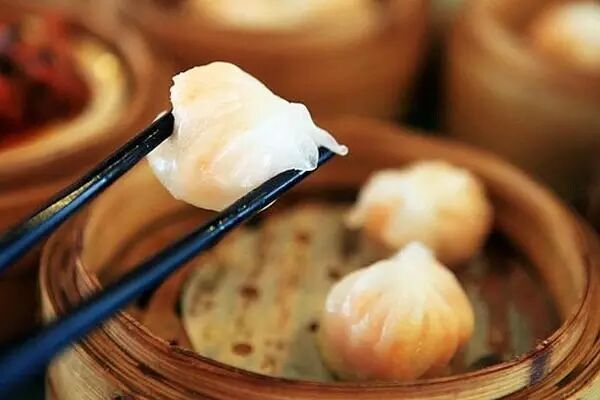 如果你想检验点心师技艺,最好来笼虾饺——澄面皮爽滑细韧,虾仁鲜笋陷娇嫩可口,半月形蜘蛛肚12褶一口吞,汁甜陷鲜,味美无比。