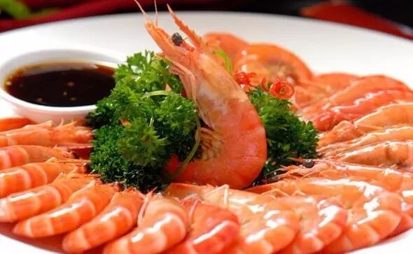 “白灼”可以保持海鲜的鲜甜嫩,然后将虾剥壳蘸酱汁而食。