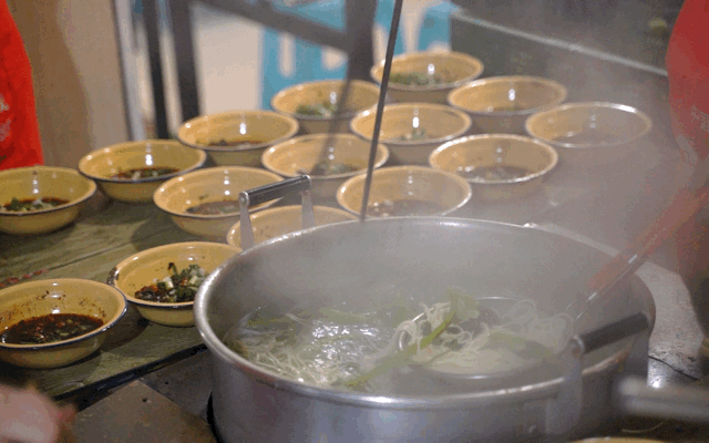 这家面店只做夜市,连个正式门面都没有,找了个楼道摆上排桌子就能营业。
