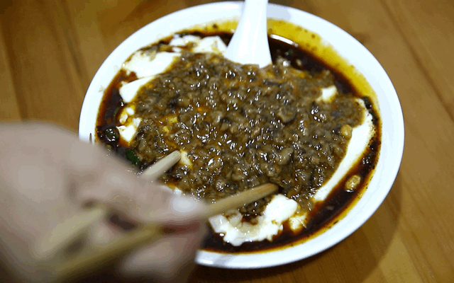 豆花和原本重庆豆花不同,它更柔软,筷子轻轻一碰就能碰开。