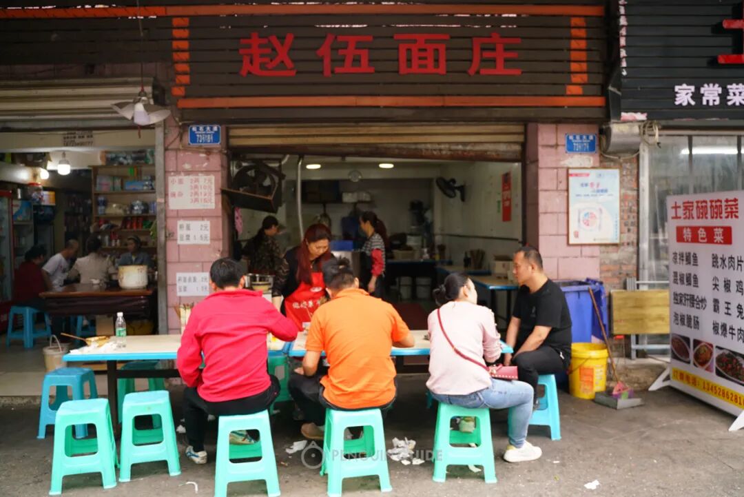 好几家小面名店都开在这里,但名声最响的,要数赵伍。从这家神店里出来的徒弟,各个都开了厉害的店,江湖人称“赵伍派”。