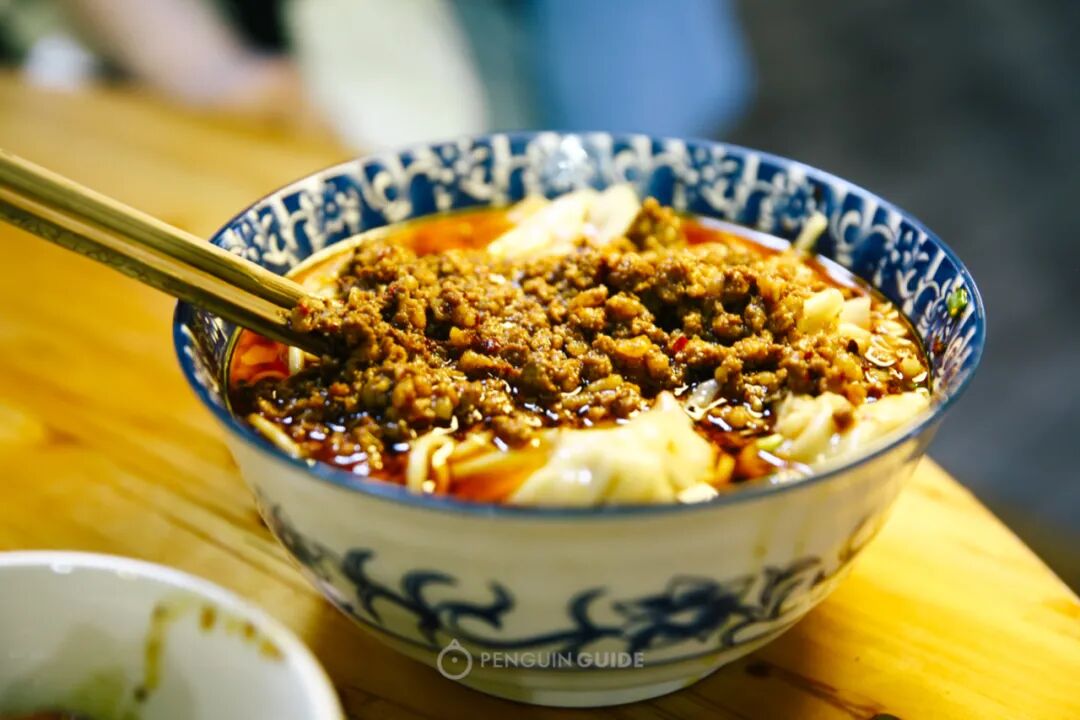 融合抄手与面的灵魂,是杂酱!它家的杂酱很有特色,不是常见的软烂派,而是紧致鲜咸的。在抄手面上㧟上一大勺杂酱,拌开,能感受到鲜辣饱满的攻势。