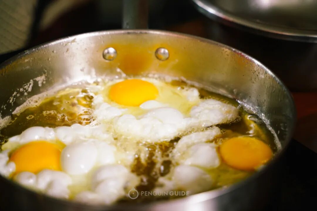 它家的荷包蛋,也相当野蛮,比搪瓷盅还大出一圈!