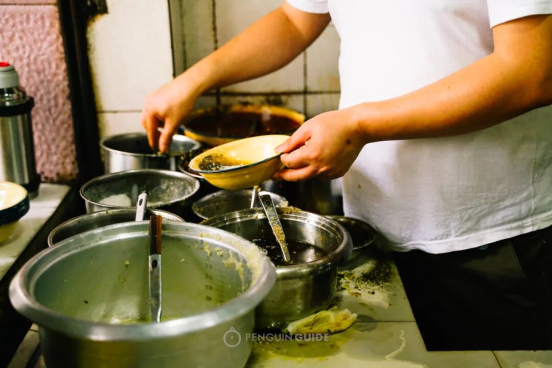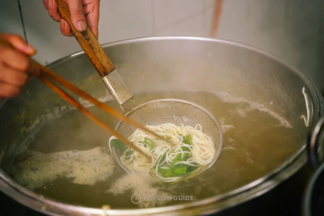 至此,这碗面才完成了二分之一;剩下的二分之一,是面和配菜的加持。