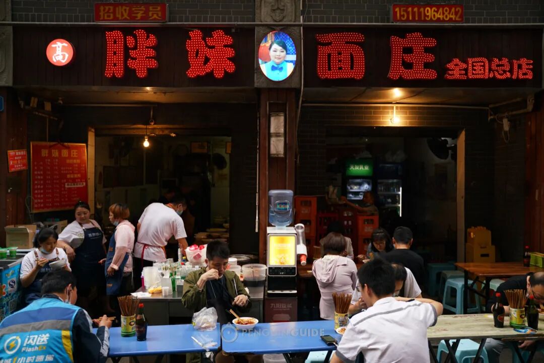 来重庆,自然不能忘了小面圈子里的明星:高胖妹面庄。尽管褒贬不一,但它是绕不开的一家店。