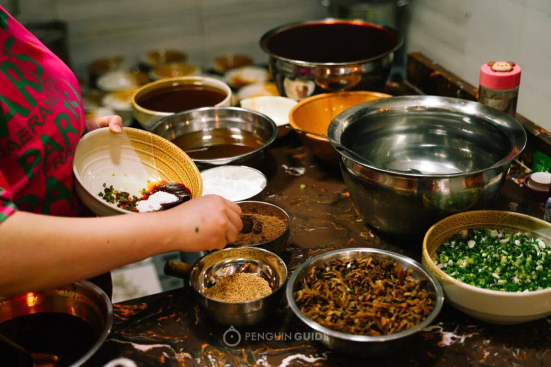 大家唯一认同的是标准是:这佐料要复杂,也要带着平衡。复杂体现在数量上,十几种佐料齐上阵,口感一下子就饱满了;平衡体现在味型上,麻、辣、咸必须一一到位。