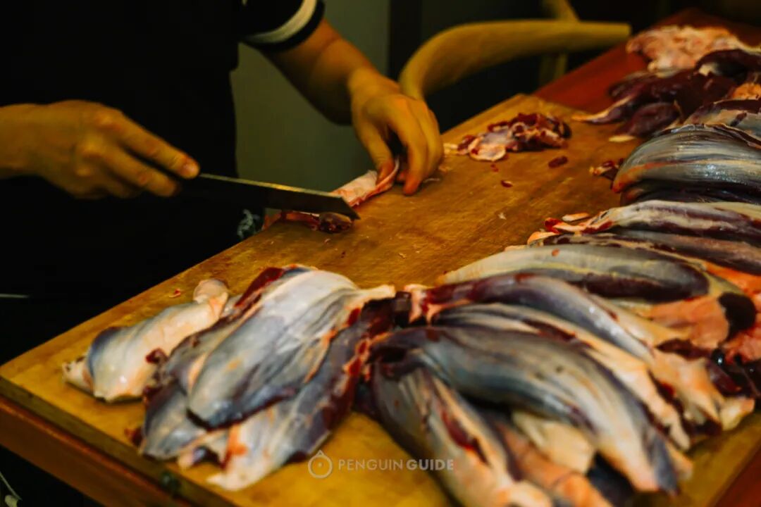 火仙每天只卖200碗牛肉面,差不多中午就卖完了。到了下午,老板就会坐在店里,亲手处理鲜牛腱子,从剃筋到切块,不厌其烦。