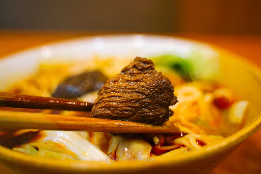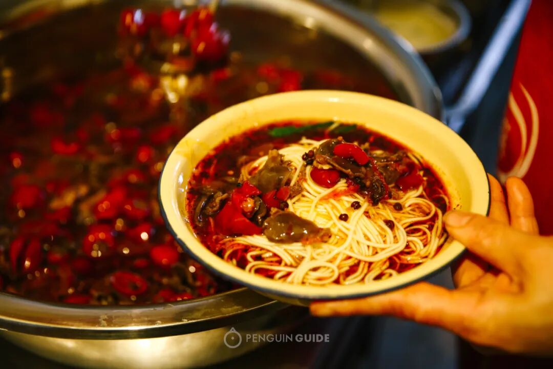 面在汤里浸泡越久,味道越发重,但始终保持在一个平衡,麻辣而不燥,鲜咸而不干。所以不推荐你点微辣,很容易破坏整个味型的平衡。